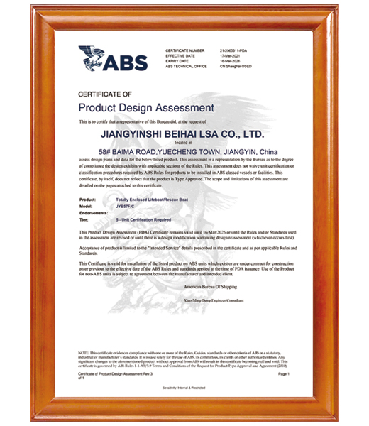 江陰市北海救生設(shè)備有限公司是一家專注于高性能船艇,救生/救助艇,水面無人艇,和收放裝置的設(shè)計(jì)、研發(fā)、生產(chǎn)、銷售及服務(wù)的有限公司;公司具有一級(jí)Ⅱ類纖維增強(qiáng)塑料船舶生產(chǎn)資質(zhì),二級(jí)鋁質(zhì)船舶生產(chǎn)企業(yè)資質(zhì)和三級(jí)Ⅱ類鋼質(zhì)船舶生產(chǎn)資質(zhì)。